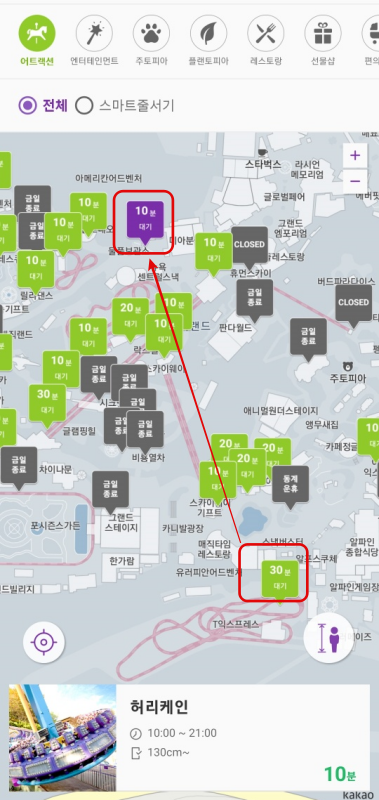 ① 정신 챙기고, 밥을 먹으면서 앱으로 줄 서기를 하려고 하는데 이런 허리케인은 줄 서기가 안됩니다.