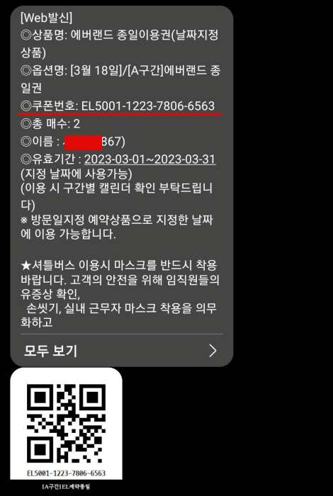 ③ 에버랜드 앱에 구매번호 입력 및 사전 등록 : 사전 등록하고 방문하는 것이 입장할 때 번거롭지 않습니다.