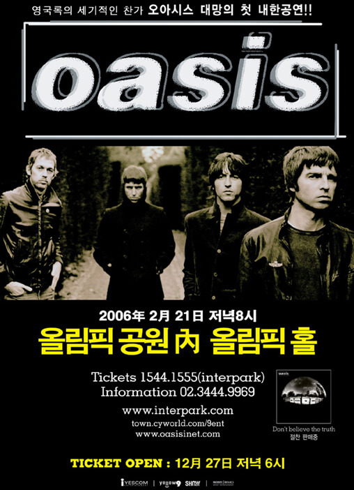 전성기 시절 오아시스는 1996년 영국 넵워스파크에서 열리는 그들의 공연을 보기 위해 영국 인구의 5%가 예매를 시도했던 적도 있을 정도로, 영국의 90년대를 상징하는 밴드입니다.