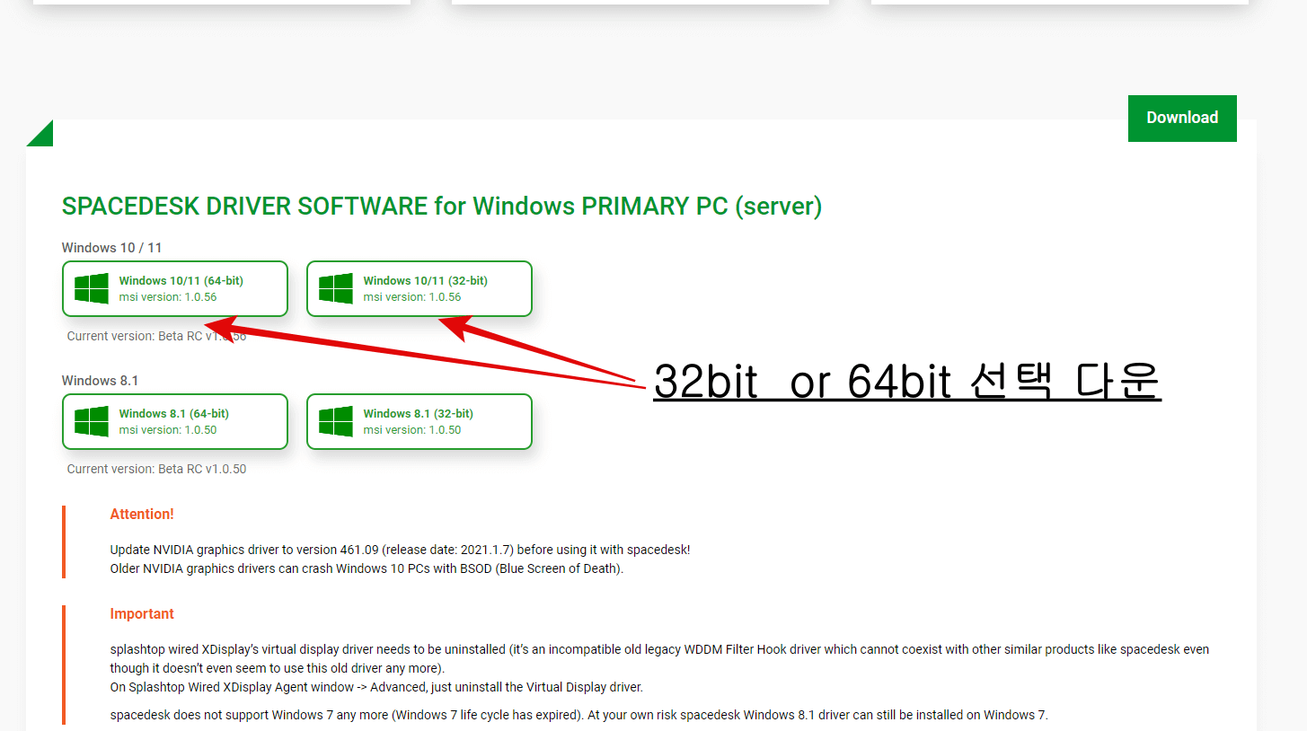 ① Spacedesk.net에 들어가서 프로그램 다운로드로 들어갑니다.