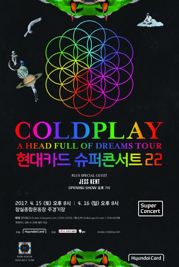 내한 공연으로는 《A Head Full of Dreams Tour》의 일정으로, 현대카드 슈퍼콘서트로 2017년 방한한 적이 있습니다.